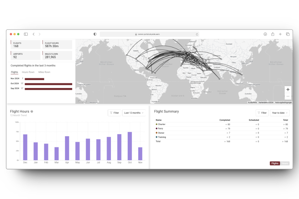 Skyside offers transparent and detailed invoicing and reporting, keeping you well-informed about your aircraft’s financial performance.